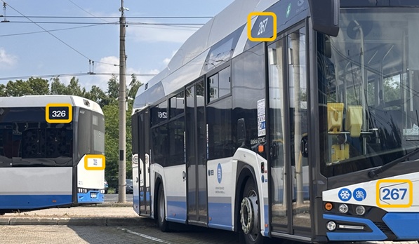 Hlavní změnou je také sjednocení evidenčních čísel vozidel, která slouží k lepší identifikaci vozidel v mimořádných nebo krizových situacích. Každý vůz má své jedinečné evidenční číslo, které je umístěno tak (viz obrázek), aby se cestující mohl rychle zorientovat, kterým vozidlem MHD jel.