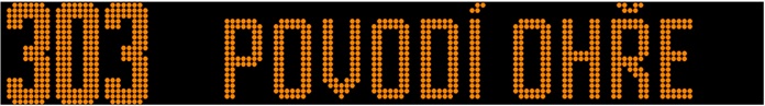 - Přední část vozidla – zobrazuje číslo linky (např. 303) a cílovou stanici (např. POVODÍ OHŘE).