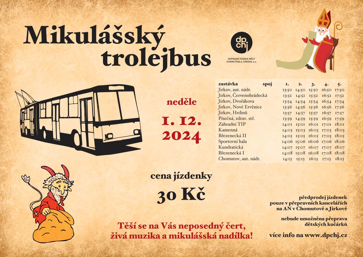 Mikulášský trolejbus opět vyjíždí do ulic Chomutova a Jirkova!