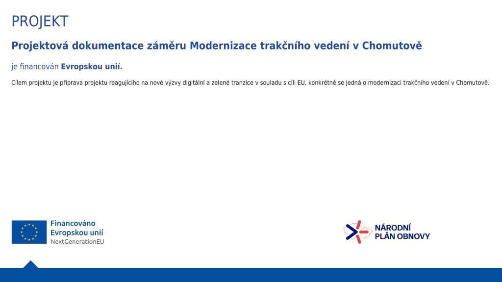 Cílem projektu je příprava projektu reagujícího na nové výzvy digitální a zelené tranzice v souladu s cíli EU, konkrétně se jedná o modernizaci trakčního vedení v Chomutově.